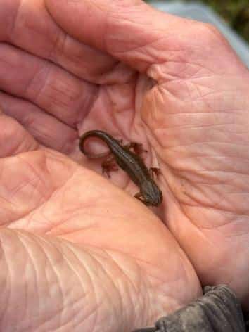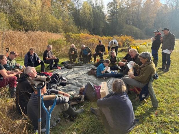 Bij de koffie werd kort verslag gedaan van een recent onderzoek naar verschillende soorten muizen die in het gebied rondlopen. Ook werden we verrast door een kleine watersalamander die tussen onze spullen rondkroop.